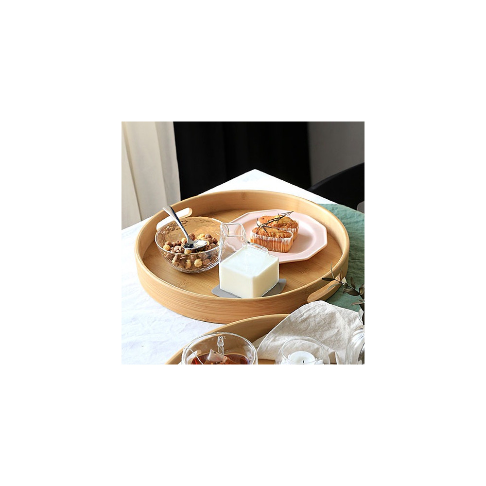 대나무 손잡이 원형 트레이 대