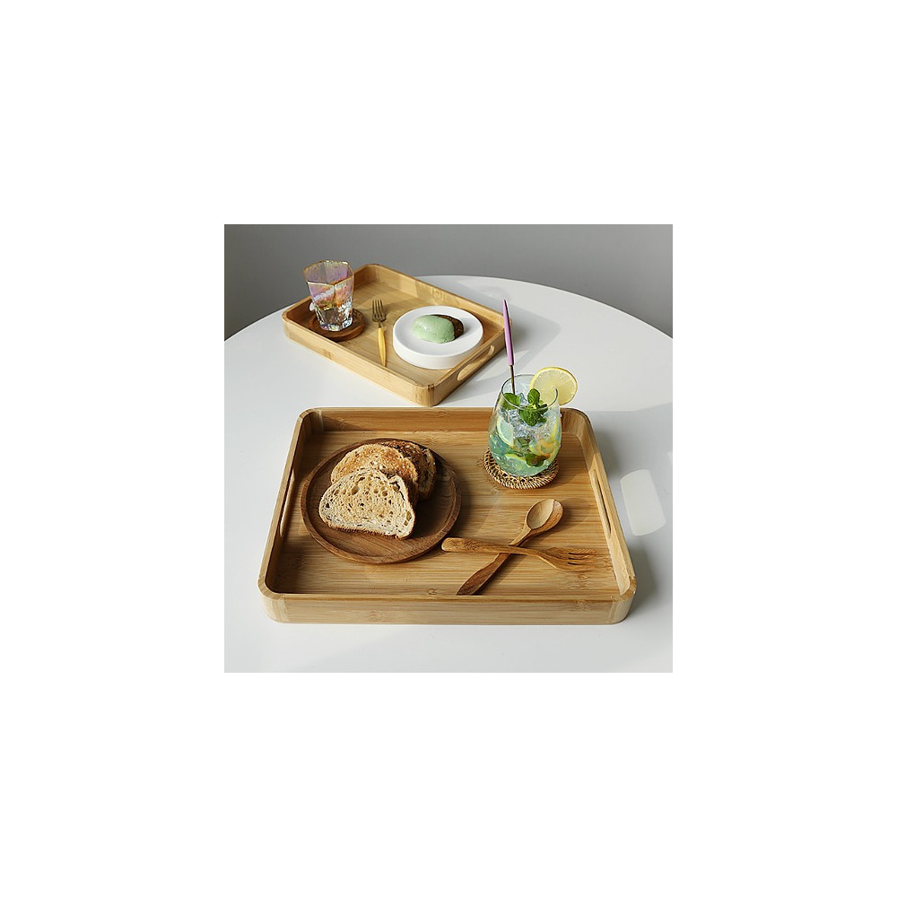 대나무 손잡이 직사각 라운딩 트레이 L