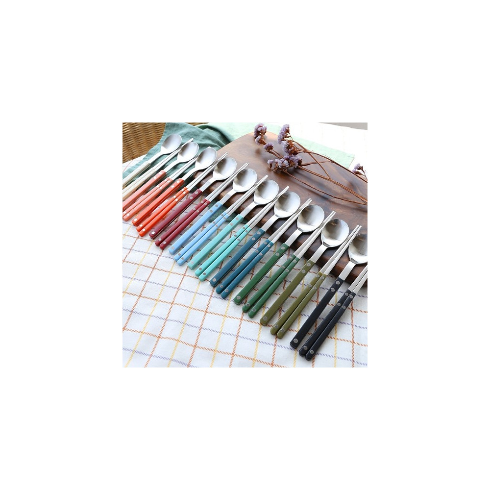 나무 옻칠 컬러 손잡이 곡선 수저세트